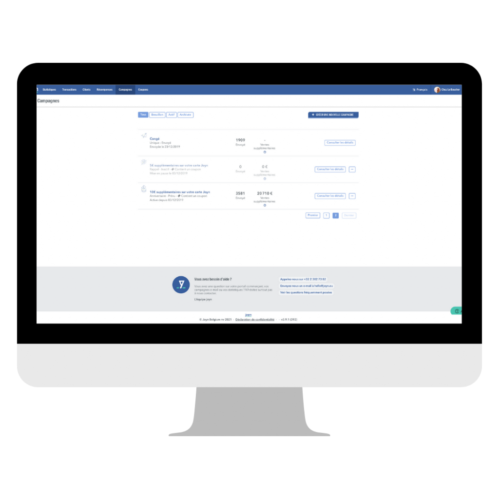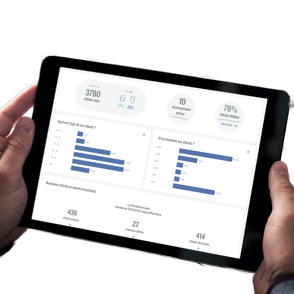 Ainsi, si vous décidez de recommencer l’aventure Joyn, il vous suffit de communiquer à nos équipes si vous souhaitez ou non récupérer votre base de données. En la récupérant, vous récupérez non seulement les données de vos clients mais ceux-ci récupèrent également leurs points !