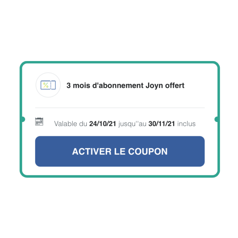 Jusqu’au 31 novembre, nous vous proposons de redevenir Joyn et de profiter de 3 mois d’abonnement offert. Cela vous permettra de tester le produit et de réaliser vos campagnes mails dès la signature de votre contrat. De plus, bénéficiez d’une campagne Joyn Advertsing offerte d’une valeur de 250 €.